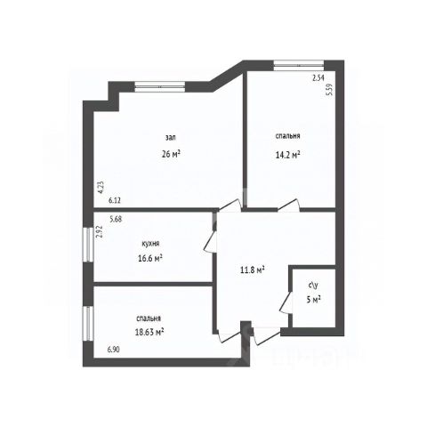 По проекту трехкомнатная. Возможна перепланировка. Каркас (без внутренней отделки). Установлены брондверь, окна, подключены коммуникации ( газ, вода, свет, канализация) и приборы учёта к ним. Подвал и первый этаж коммерческие, остальные четыре этажа жилые. Дом уже частично заселён. В 5 минутах пешком - открыта новая школа 14. В 10 минутах пешком - новая автодорога, ведущая на федеральную трассу и на набережную в другую сторону. Бонусом - виды с окна. Виды открытые, на закаты солнца, на горы, эти виды закрыты уже не будут, т.к. территория уже застроена частным сектором