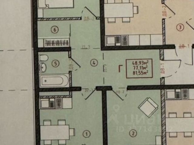 Площадь общая=54кв.м., большая лоджия, кухня=6кв.м., комнаты разносторонние смежные, с/у раздельный, квартира абсолютно без ремонта.