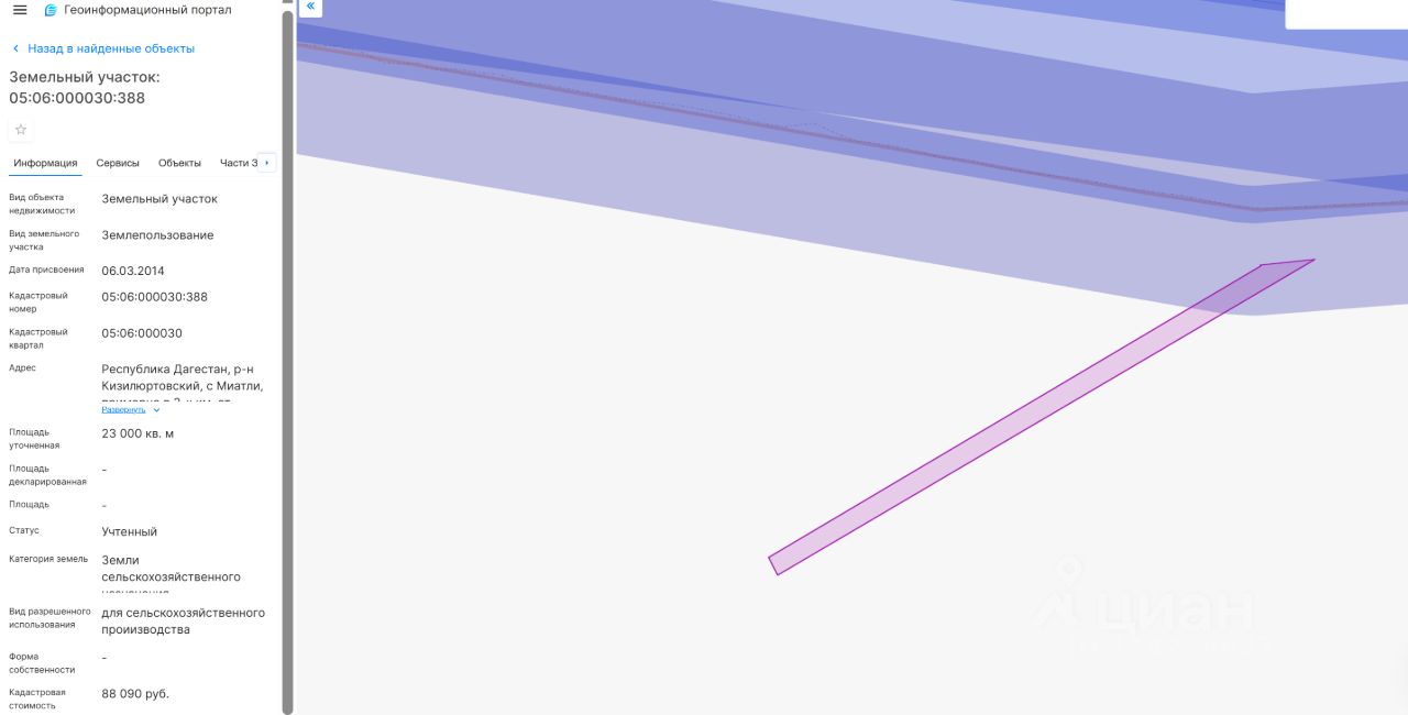 Земельный участок с кадастровым номером 05:06:000030:388 площадь 23000 по адресу Республика Дагестан, р-н Кизилюртовский, с Миатли, примерно в 3-х км. от селения старые Миатли, по направлению на север