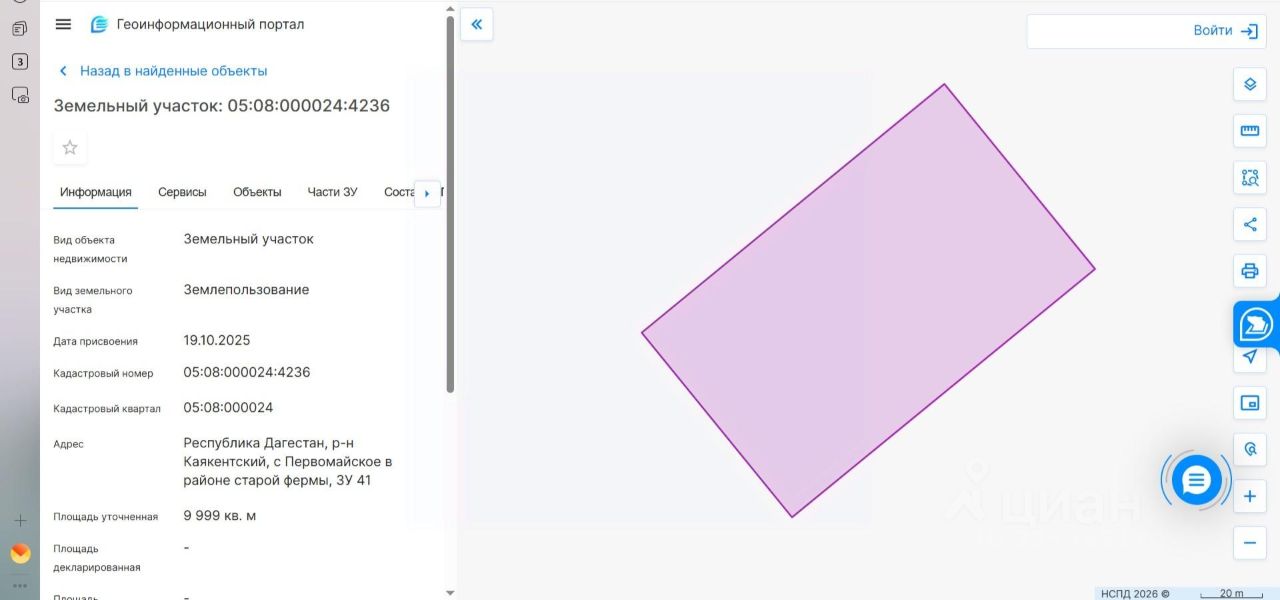 Лот 1 - земельный участок, кадастровый номер 05:08:000024:4236, расположенный по адресу: Российская Федерация, Республика Дагестан, Каякентский район, село Первомайское в районе старой фермы, ЗУ 41. Площадь участка 9 999 кв.м., разрешенное использование - "Для ведения личного подсобного хозяйства", категория земель земли населенных пунктов