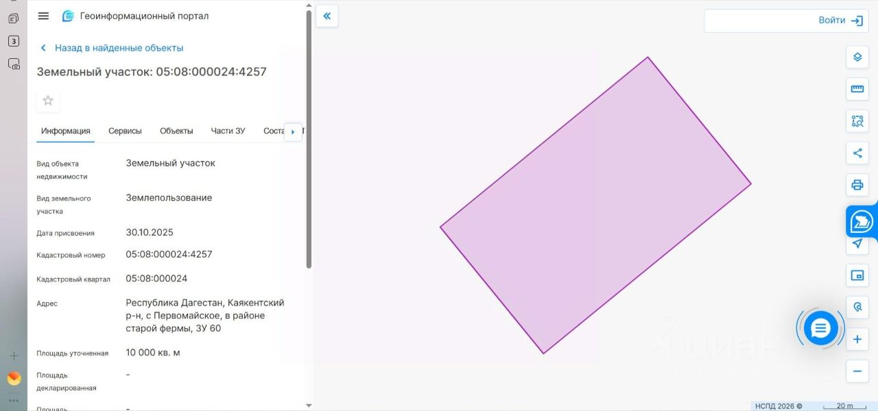 Лот 1 - земельный участок, кадастровый номер 05:08:000024:4257, расположенный по адресу: Российская Федерация, Республика Дагестан, Каякентский район, село Первомайское в районе старой фермы, ЗУ 60. Площадь участка 10 000 кв.м., разрешенное использование - "Для ведения личного подсобного хозяйства", категория земель земли населенных пунктов