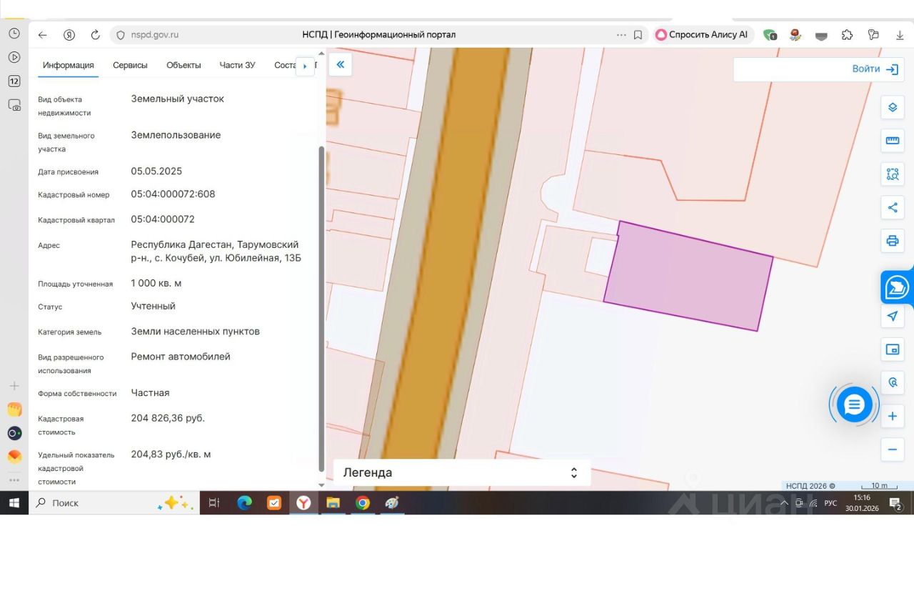 Земельный участок с кадастровым номером 05:04:000072:608, расположенный по адресу: РД, Тарумовский район, с. Кочубей, ул. Юбилейная, 13б. Категория земель: земли населенных пунктов. Площадь земельного участка 1000 кв.м. Вид разрешенного использования: ремонт автомобилей. Вид права - аренда. Срок аренды - 30 месяцев.