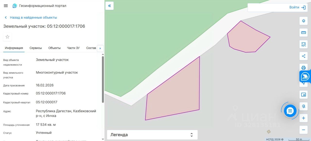 Лот 1 - земельный участок, кадастровый номер 05:12:000017:1706, расположенный по адресу: Российская Федерация, Республика Дагестан, Казбековский район, с. Инчха. Площадь участка 17534 кв.м., разрешенное использование - для сельскохозяйственного использования, категория земель земли сельскохозяйственного назначения.