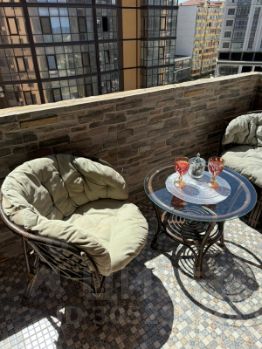 Кровать в спальне с ортопедическим матрасом Ascona, в зале большой раскладной диван , отдельная гардеробная ,два санузла с необходимыми средствами гигиены , в кухне встроенная мебель ,посудомоечная машина , духовой шкаф , холодильник с неограниченной подачей льда , зоны для отдыха в лоджии и балконе из натурального ротанга
