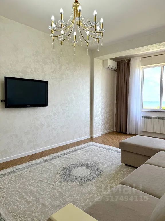Гостиная с диваном и телевизором, кондиционером и видом на море