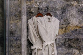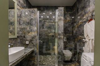 Санузел с душем укомплектован феном для волос, набором туалетных принадлежностей, халатами и тапочками, стиральной машиной.