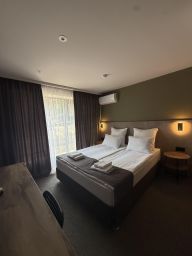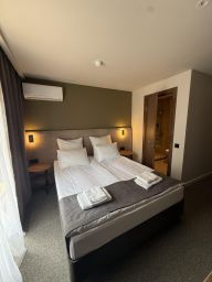 К распоряжению гостей 8 номеров: Dbl, Twin, Superior, Suite, Двухкомнатный Lux. Каждый номер оборудован всем необходимым: комфортные кровати, телевизор, кондиционер, санузел, постельное бельё, полотенца.