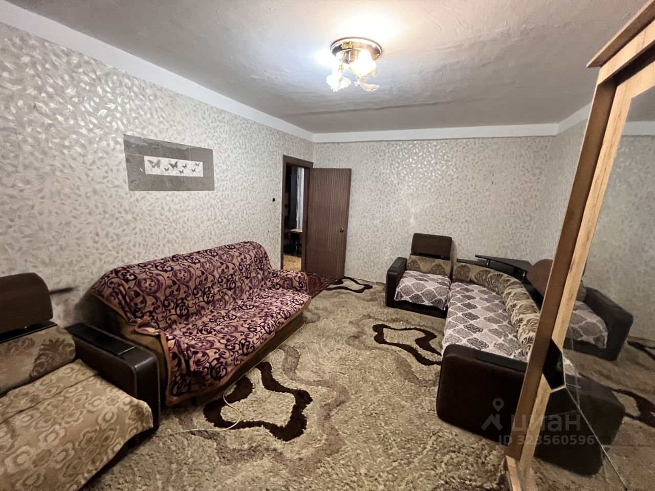 Площадь=55кв.м., лоджия, раздельные комнаты в обе стороны, среднее состояние, мебель вся необходимая и техника.