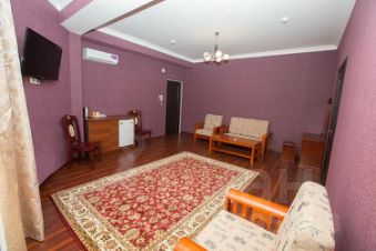 Номер для ценителей комфорта и изящества каждой детали интерьера. Пространство функционально разделено на комфортную зону отдыха, рабочий уголок и спальню. Вы оцените по достоинству мягкие и теплые тона, атмосфера которых поможет Вам отдохнуть и расслабиться. Ванная комната декорирована зеркалами, оснащена отдельной кабиной с ливневым душем.