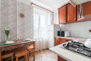 оборудованная кухня с газовой плитой, холодильником;