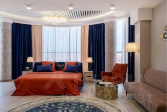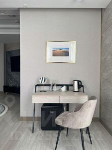Светлый уютный номер, оборудованный всем необходимым для комфортного проживания. В номере: двуспальная кровать, мягкая мебель, телевизор со Smart TV, кондиционер, вместительный шкаф для хранения вещей, мини-холодильник, сейф, чайник, чайный набор, Wi-Fi и собственный санузел с душем и феном.