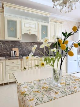 2. Для вашего удобства мы обеспечили и оборудовали квартиру всем необходимым, начиная кухонным гарнитуром и заканчивая стиральной машиной, кондиционером, высокоскоростным Wi-Fi и Smart-TV. Ничто не будет отвлекать вас от отдыха или работы.