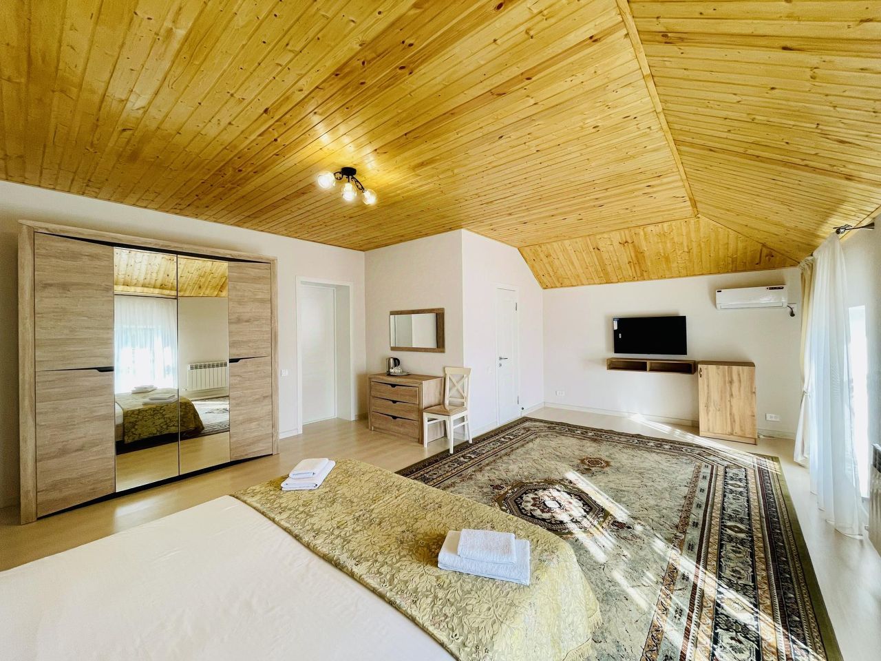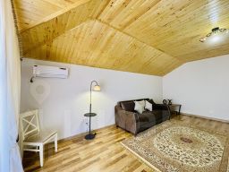 Комфортный двухкомнатный двухместный номер оснащен диваном-кроватью, большой двуспальной кроватью, шкафом. плоским ТВ, холодильником, кондиционером, журнальным столиком и собственной ванной комнатой, в которой также имеется все необходимое для комфортного проживания.