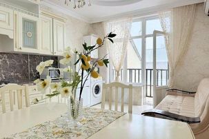 2. Для вашего удобства мы обеспечили и оборудовали квартиру всем необходимым, начиная кухонным гарнитуром и заканчивая стиральной машиной, кондиционером, высокоскоростным Wi-Fi и Smart-TV. Ничто не будет отвлекать вас от отдыха или работы.