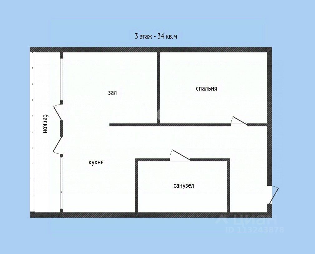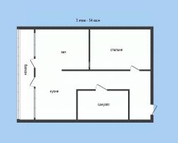 Евро 2 комнаты - 34 кв.м