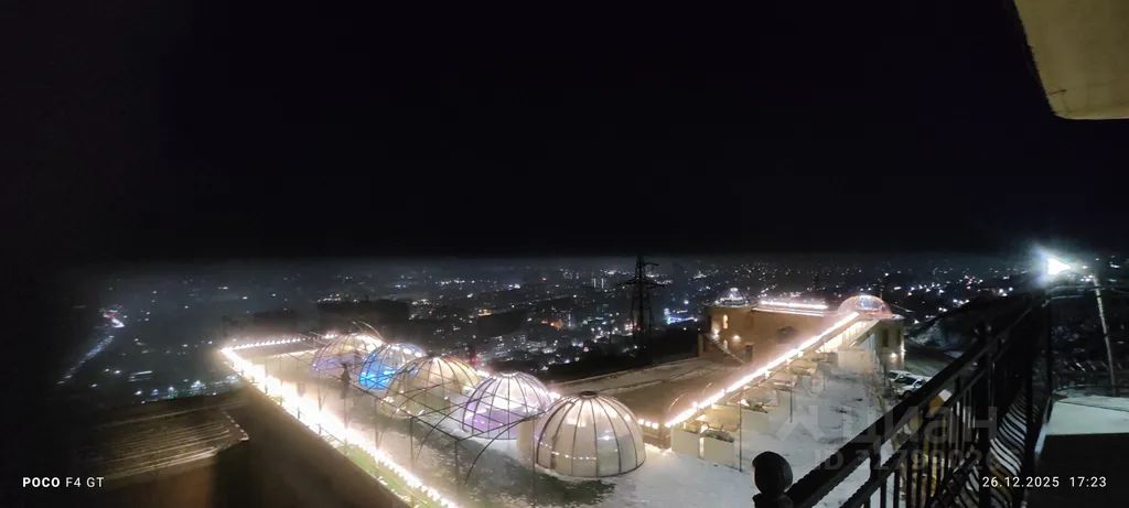 Имеется два балкона, один с видом на город, длинный балкон по периметру здания с отдельным местом для отдыха на свежем воздухе, второй маленький с видом на горы.