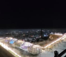 Вид на город, панорамные окна, на первых двух этажах ресторан Панорама.