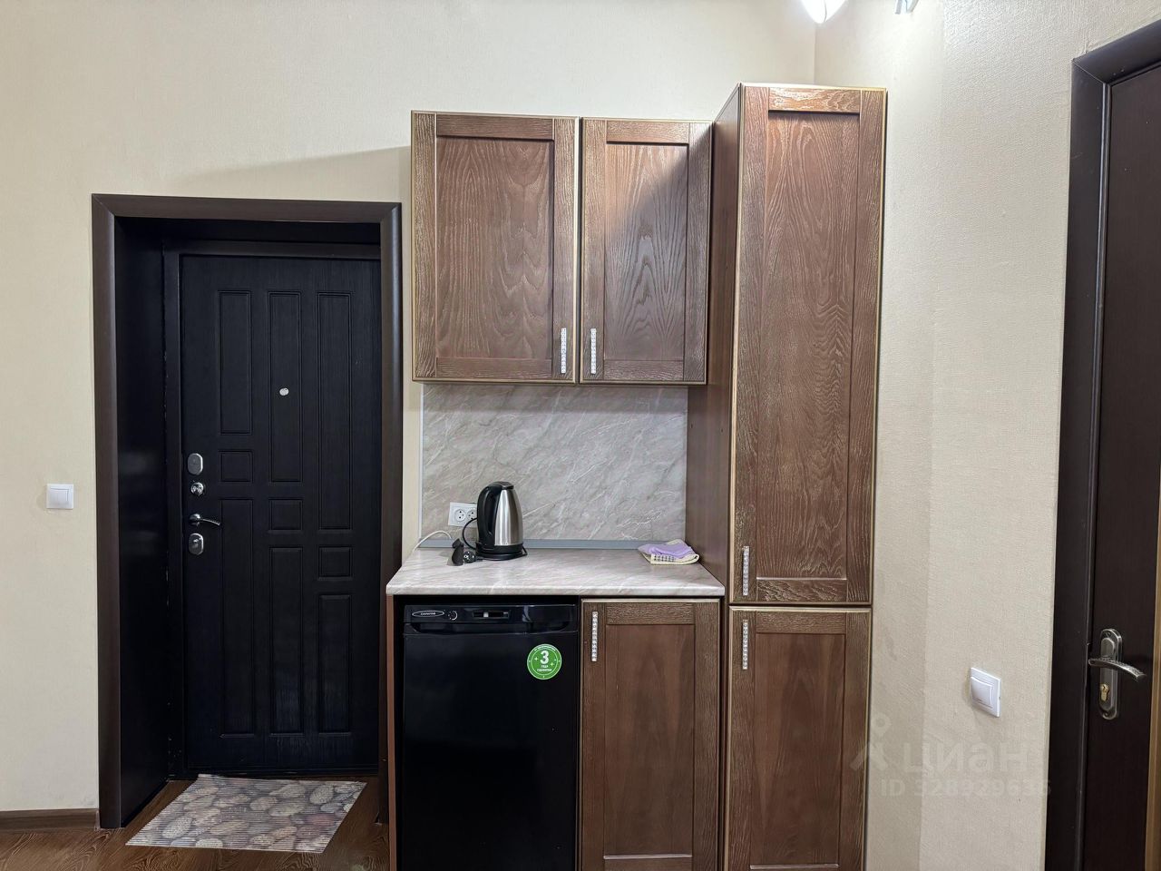 Трёхместный номер-студия с кондиционером, телевизором и кухонным уголком, санузел с ванной.