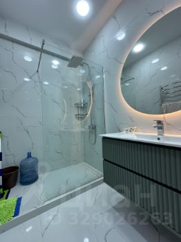 Санузел совмещенный, оформлен в современном стиле с качественной сантехникой и душевой кабиной.