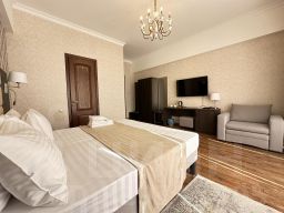 В номере расположен санузел со всеми необходимыми туалетными принадлежностями.