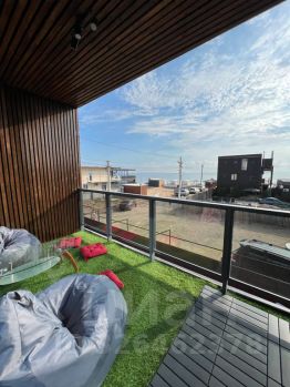 Со 2 этажа выход на балкон-веранду с видом на море, столик со стульями на балконе.
