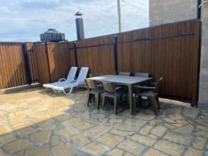Есть свой двор перед домом. Во дворе есть мангальная зона с необходимой посудой: барбекю, шампура, казан для плова. Имеется стол с креслами доля обеда, сушилка для белья и уличный сан узел.Перед домом есть своя парковка.