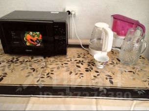 - Кухонная зона: холодильник, газовая плита, посуда, микроволновка, электрочайник, фильтр для воды, стол;
