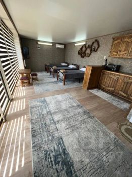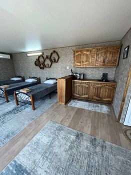 Сдаётся посуточно уютный и благоустроенный коттедж-комплекс из 3 коттеджей. Каждый коттедж — это студия на 3 + 1 человека на участке 5 соток в г. Дербент, недалеко от банкетного зала "Моряна"! В каждом коттедже есть с/у, душевая, кондиционер, холодильник, телевизор, вай-фай, микроволновка. Около каждого коттеджа есть беседка и кокон для отдыха. Парковочное место для тр. средств, автоматические ворота и оборудован видеонаблюдением. Есть мангальная зона, самовар на дровах! Море находится в метрах 300 от комплекса. В каждом коттедже по 3 кровати и при необходимости можно открыть ещё один трансформер! Сдаётся от 3 суток и выше! Стоимость 5 тыс. в сутки за коттедж.