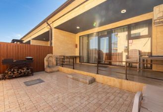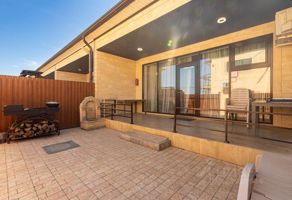 Летняя веранда с мангалом для шашлыков и барбекю, шезлонгами, большие столы для приятных посиделок на свежем воздухе