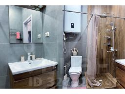 Ванная комната с душевой кабиной, горячей водой, феном и пушистыми полотенцами а также полный набор гигиенических принадлежностей