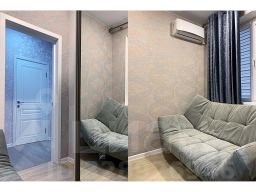 Малая спальня 6 кв.м с двуспальным диваном и шкафом купе