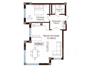 — Двухкомнатная квартира с функциональным распределением пространства;