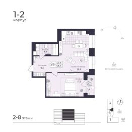 Продается 2-комн. квартира, 57,91 м²