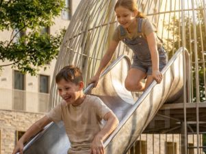 Двор спроектирован так, чтобы поддерживать активный и спокойный образ жизни одновременно.