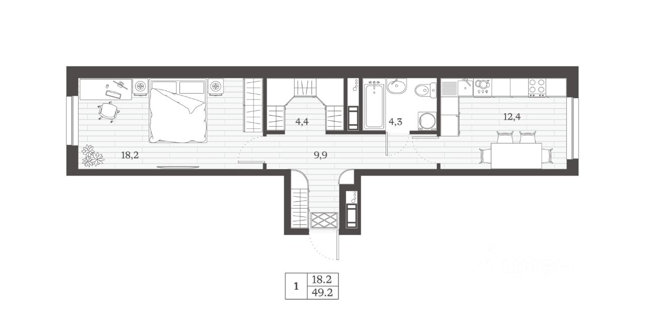 Общая площадь49,2 м²