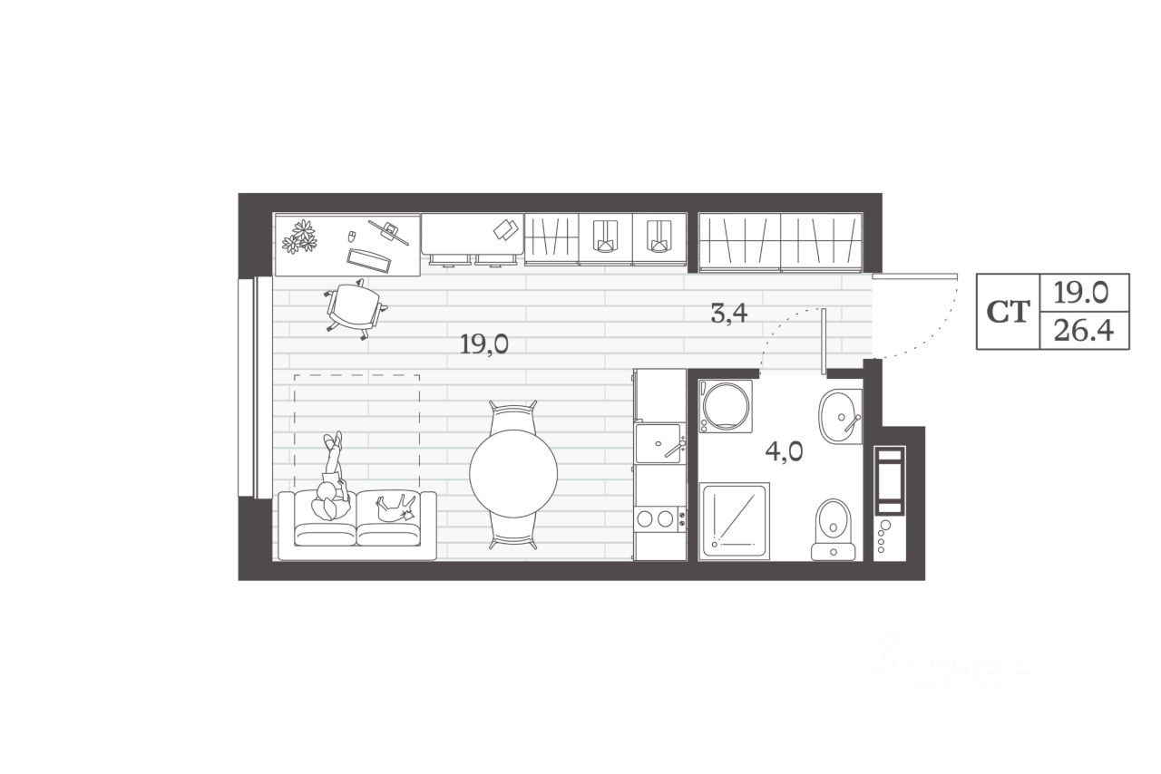 Общая площадь26,4 м²
