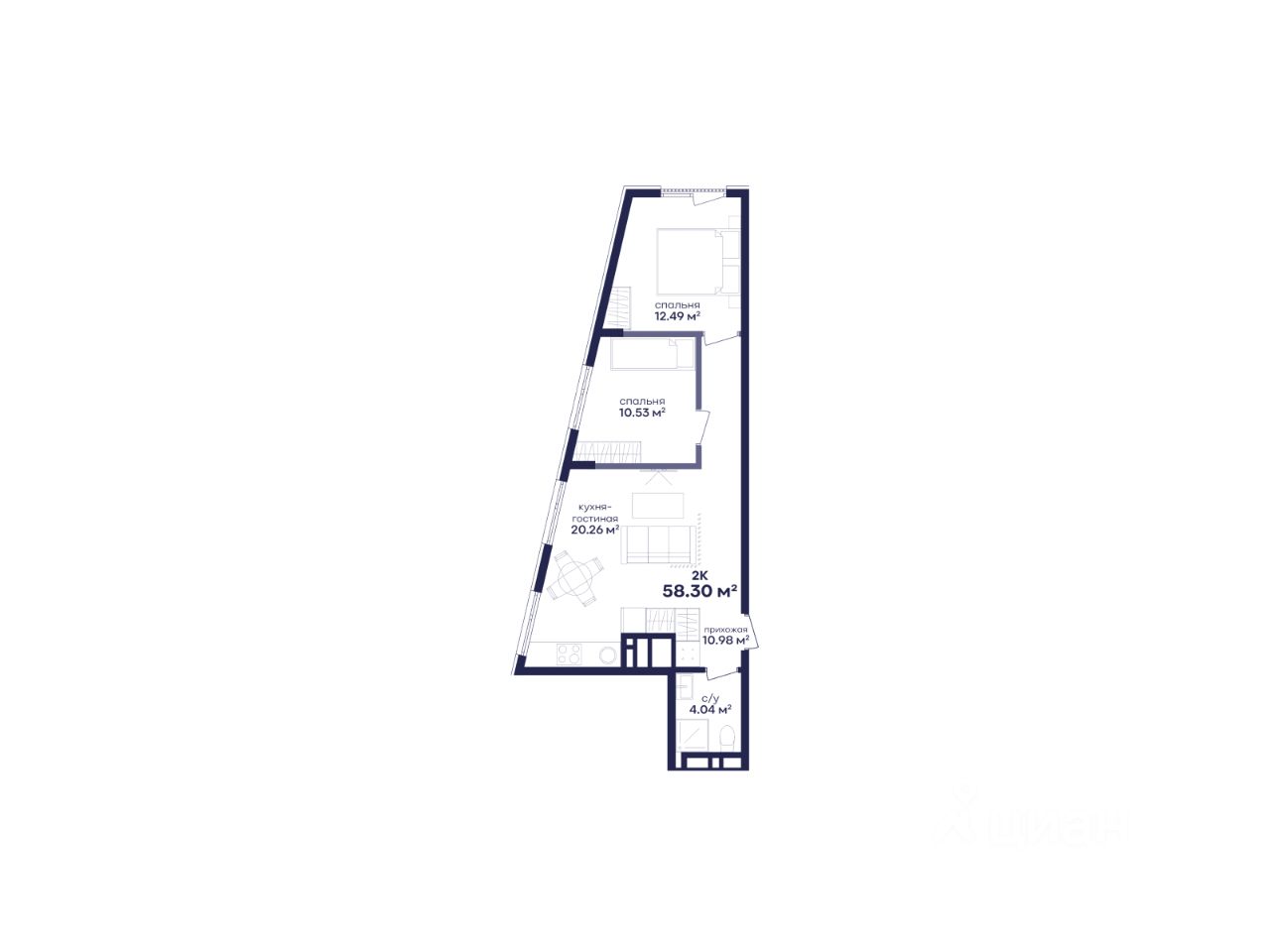 58,3 м²