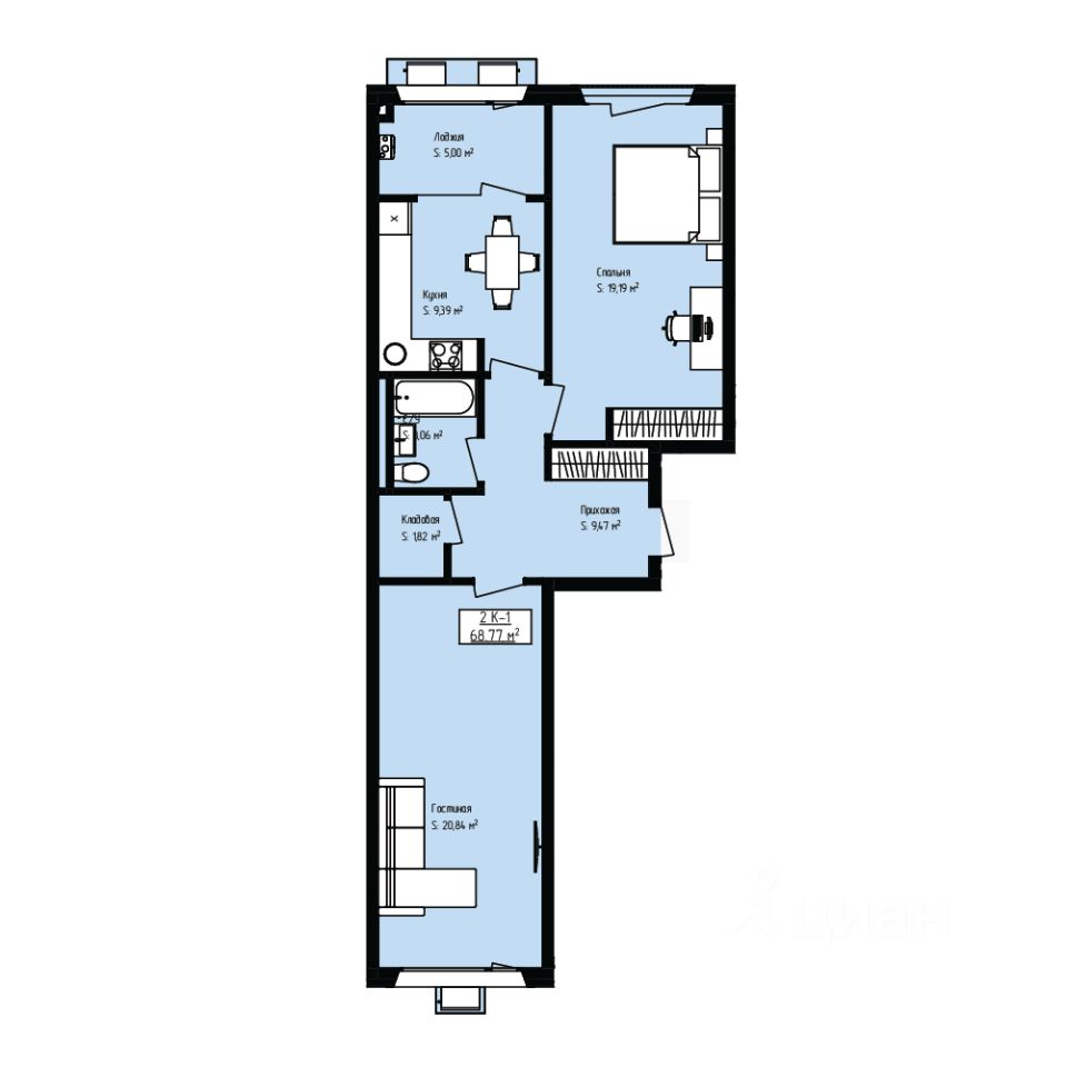 68,77 м²