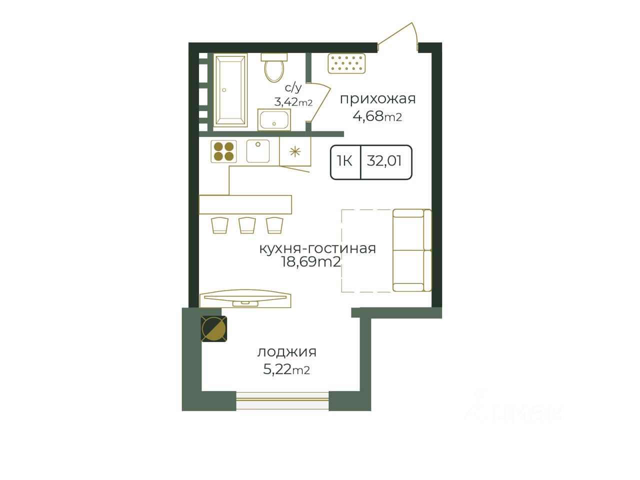 Общая площадь32,01 м²