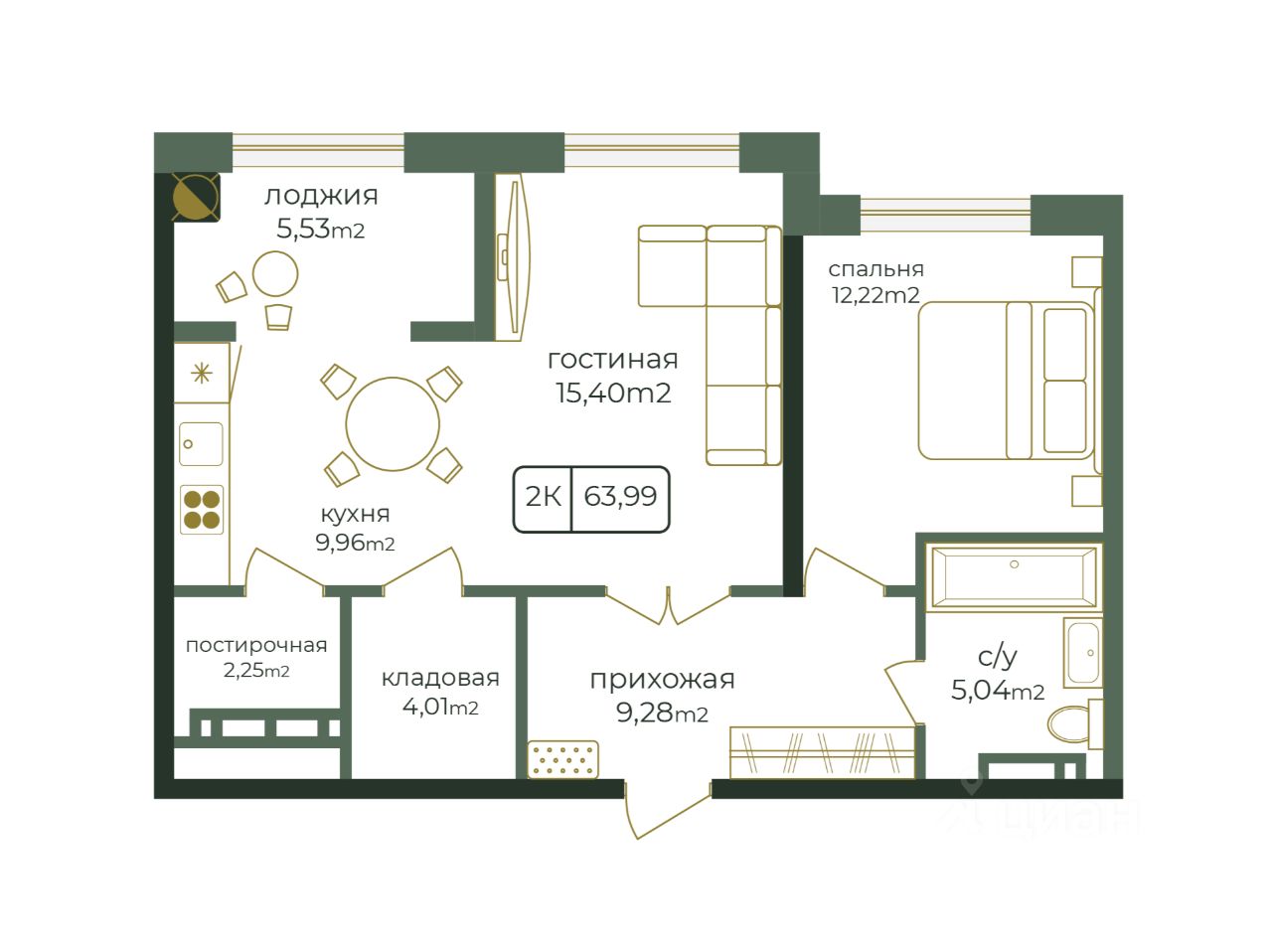 Общая площадь63,99 м²