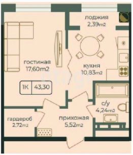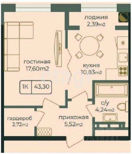 Общая площадь43,2 м²