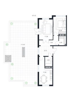 Продаётся 1-комнатная квартира в строящемся доме (Дом 1), срок сдачи: III-кв. 2026, общей площадью 187.42 кв.м., на 14 этаже.