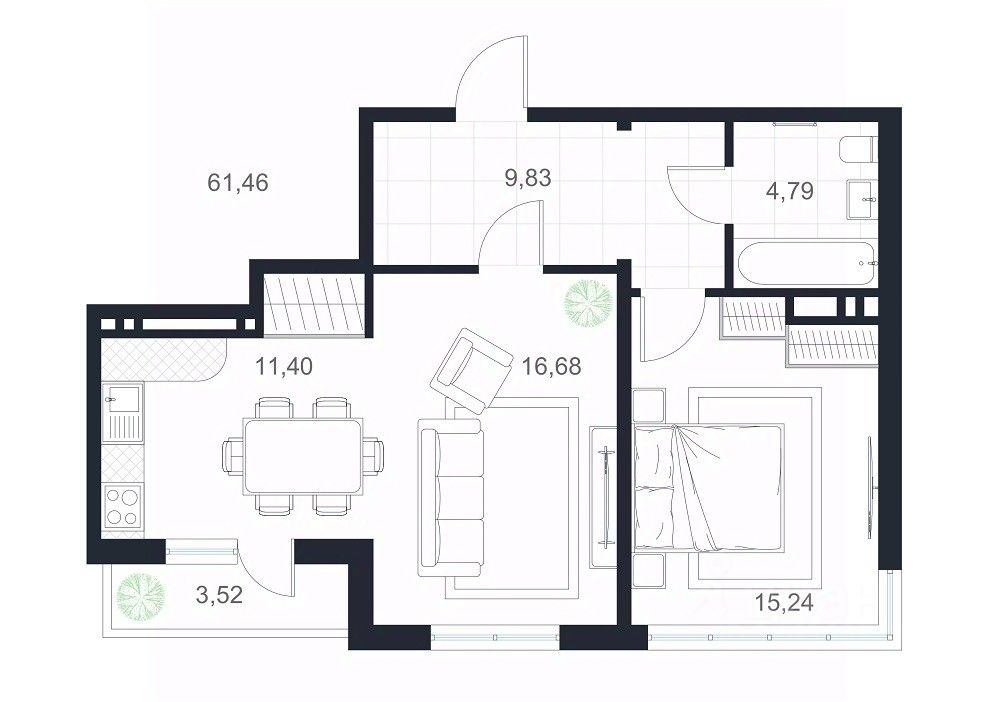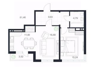 Продаётся 2-комнатная квартира в строящемся доме (Дом 1), срок сдачи: III-кв. 2026, общей площадью 61.46 кв.м., на 11 этаже.