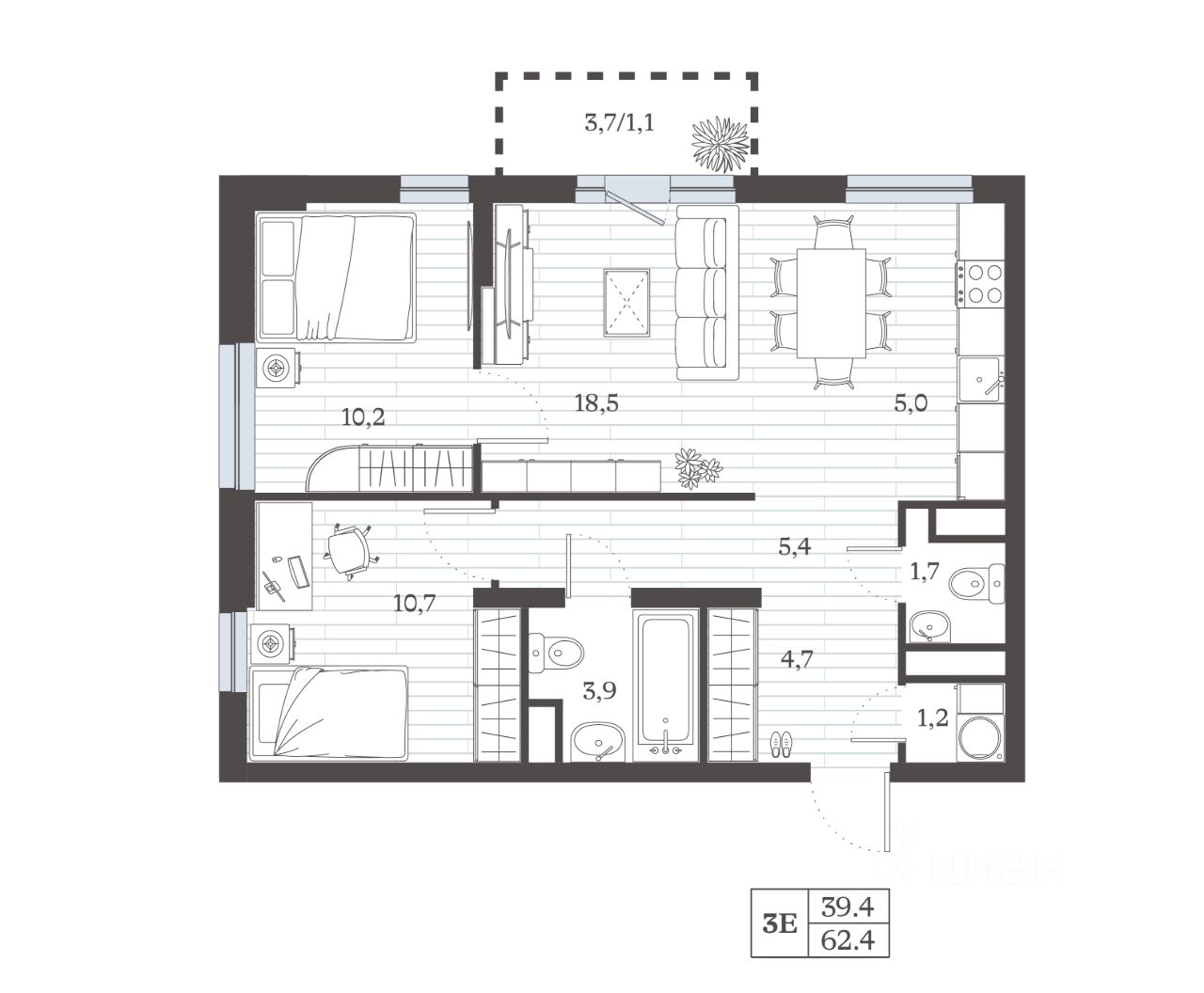 Жилая площадь39,4 м²