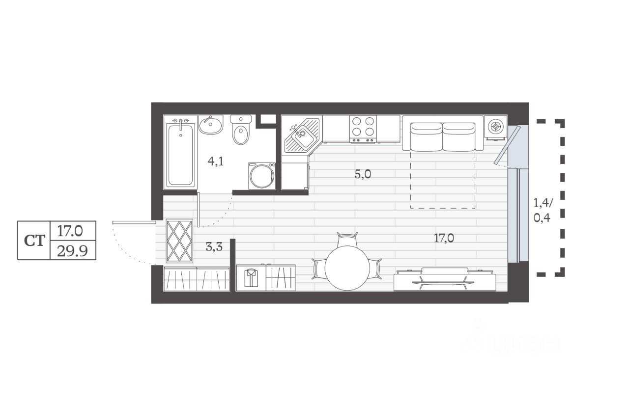Общая площадь29,9 м²
