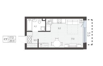 Продается студия, 29,9 м²