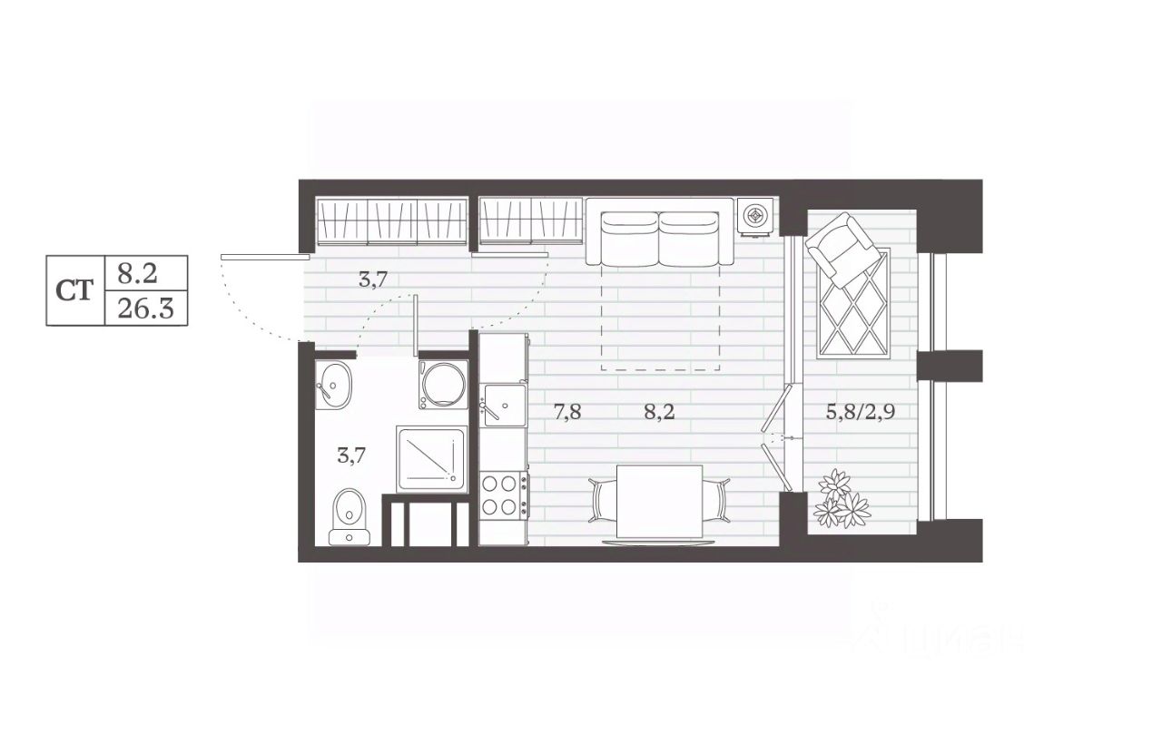 7,8 м²