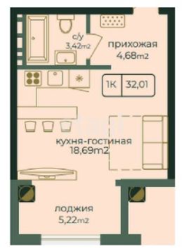 Общая площадь32,01 м²