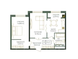 Продается 2-комн. квартира, 64,01 м²