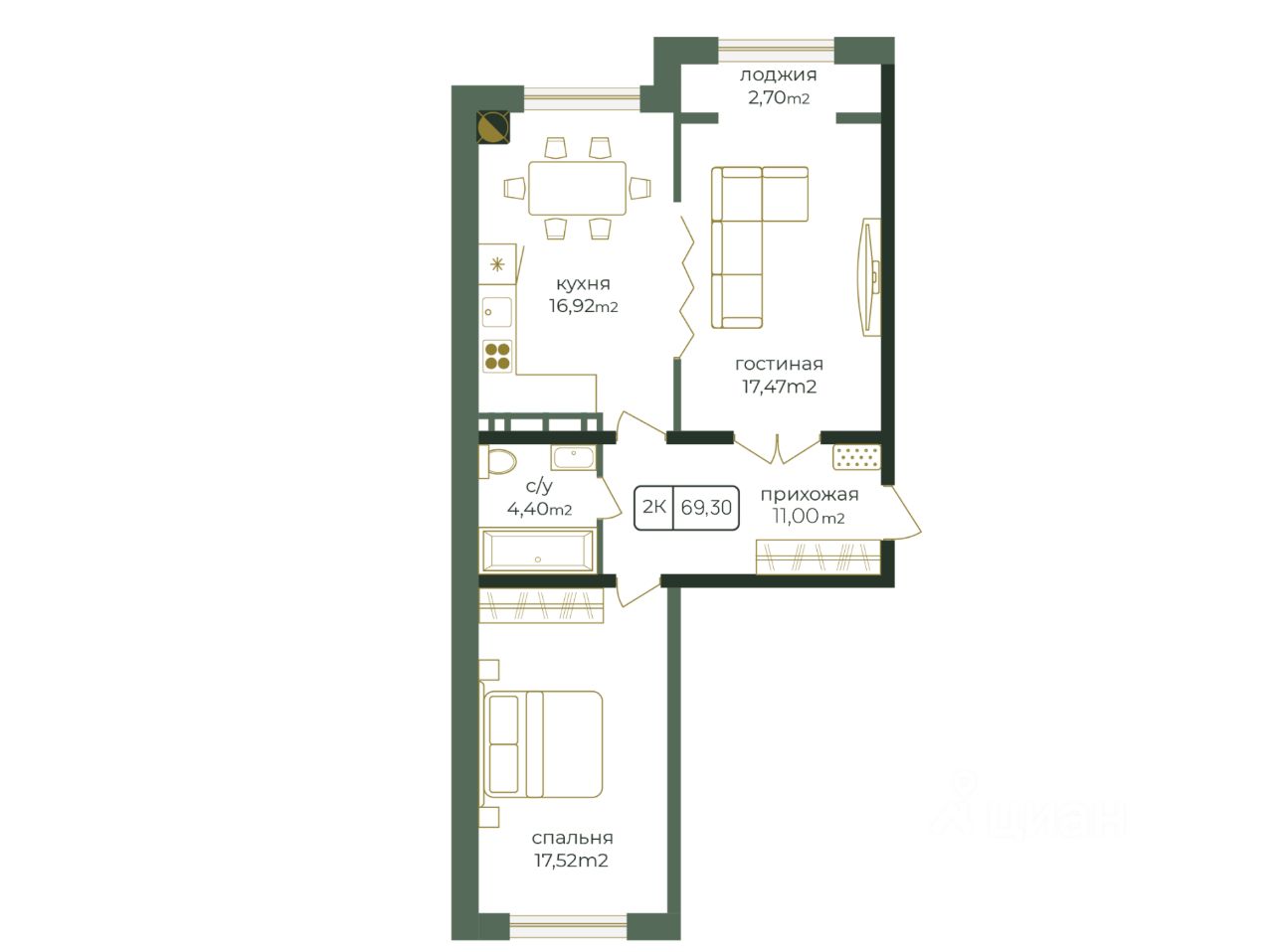 Общая площадь69,3 м²